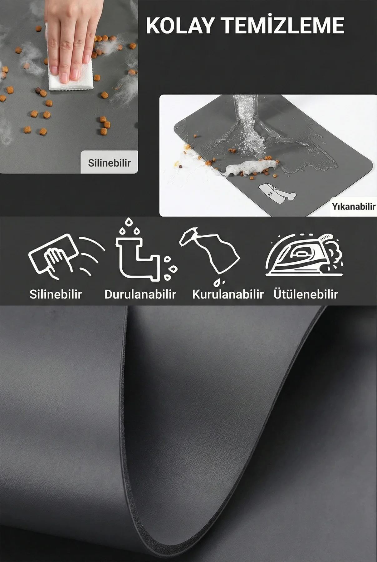 MatGo Pati Evcil Hayvan Besleme Matı, evcil dostunuzun şıklığını ve konforunu bir araya getiren benzersiz bir tasarım. Zarafetin ve fonksiyonelliğin mükemmel bir bileşimi olan bu antrasit gri paspas, 50x70cm boyutlarıyla hem kompakt hem de geniş bir kullanım alanı sunuyor. Daha güvenli bir beslenme deneyimi için kaymaz yapısıyla öne çıkan mat, aynı zamanda kolay temizlik ve hızlı kuruma özellikleriyle modern hayatın hızına ayak uyduruyor. Kedilerinizin zarif adımlarını, köpeklerinizin neşeli pati izlerini ağırlamak için ideal. MatGo, evcil hayvanınızın beslenme ritüelini bir lükse dönüştürüyor.