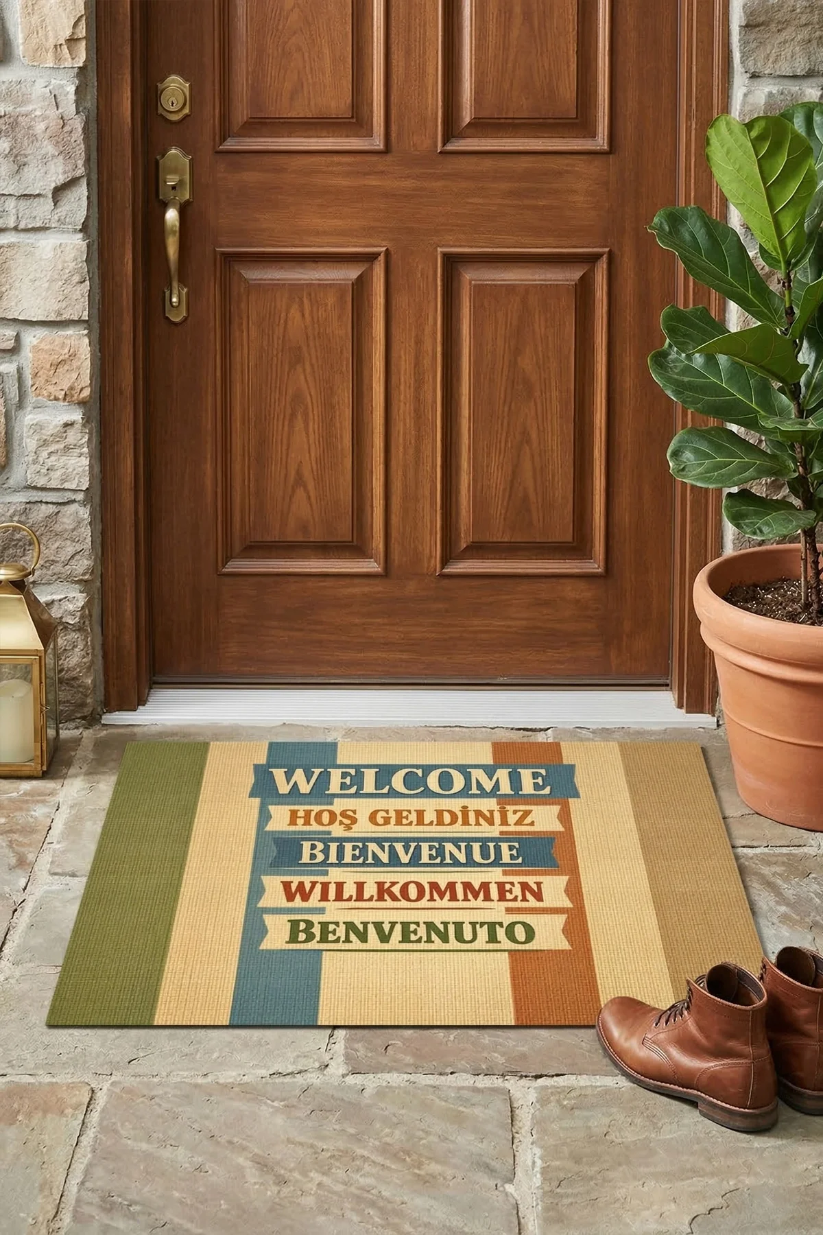 Valerine Life Çok Dilli "Hoşgeldiniz" Yazılı Kapı Önü Dış Paspası (45x70 cm) - Ev & Ofis