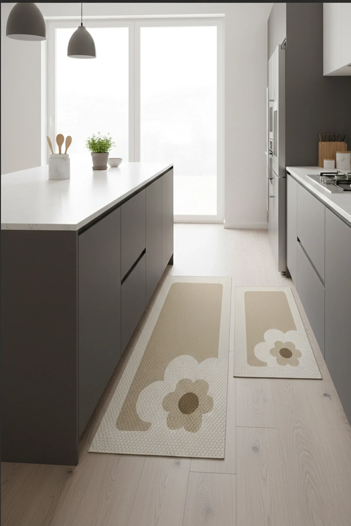 Valerine Life Mutfak Matı Halısı Yıkanır Kaymaz Taban Sıvı Geçirmez Tezgah Önü Paspası İkili Set